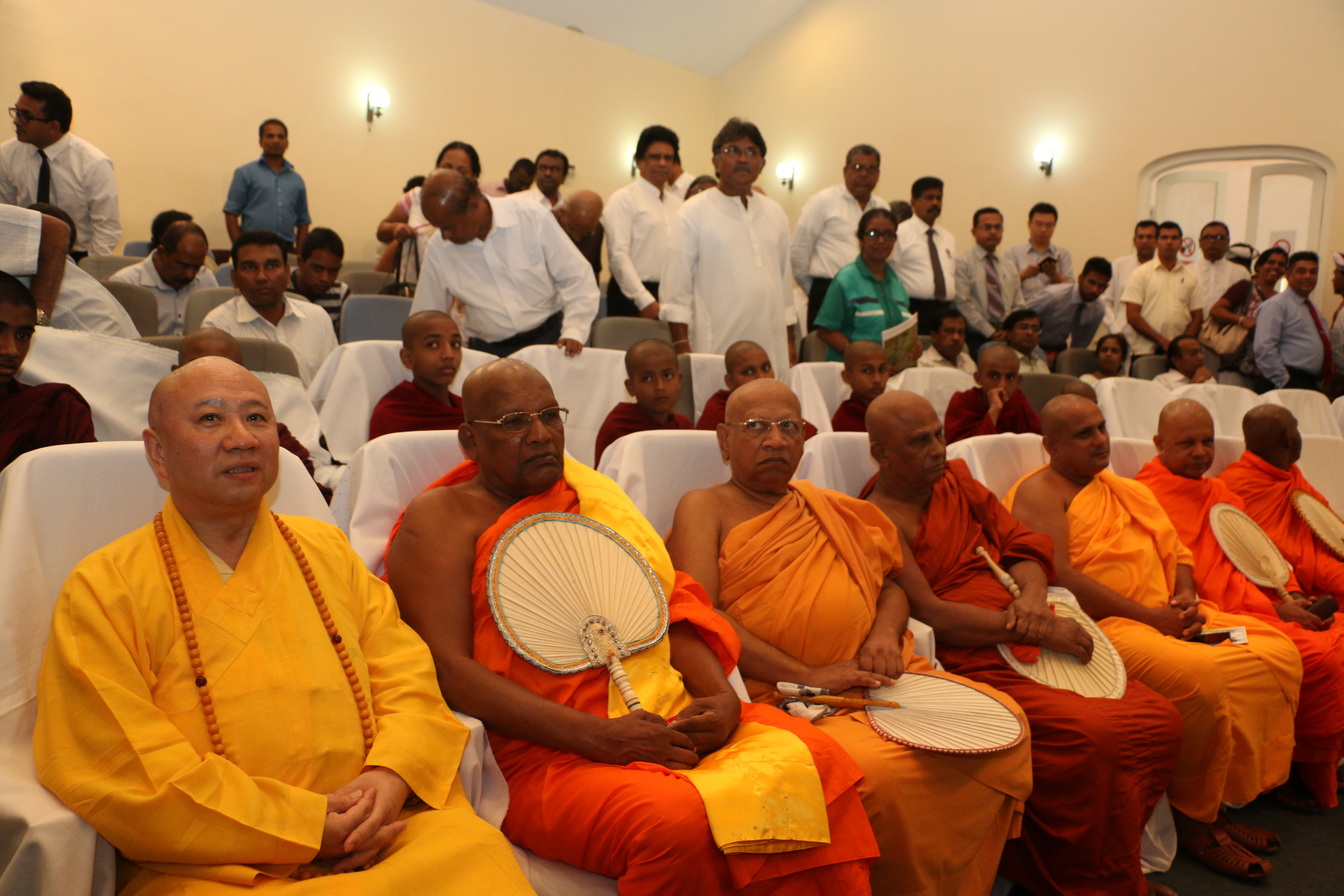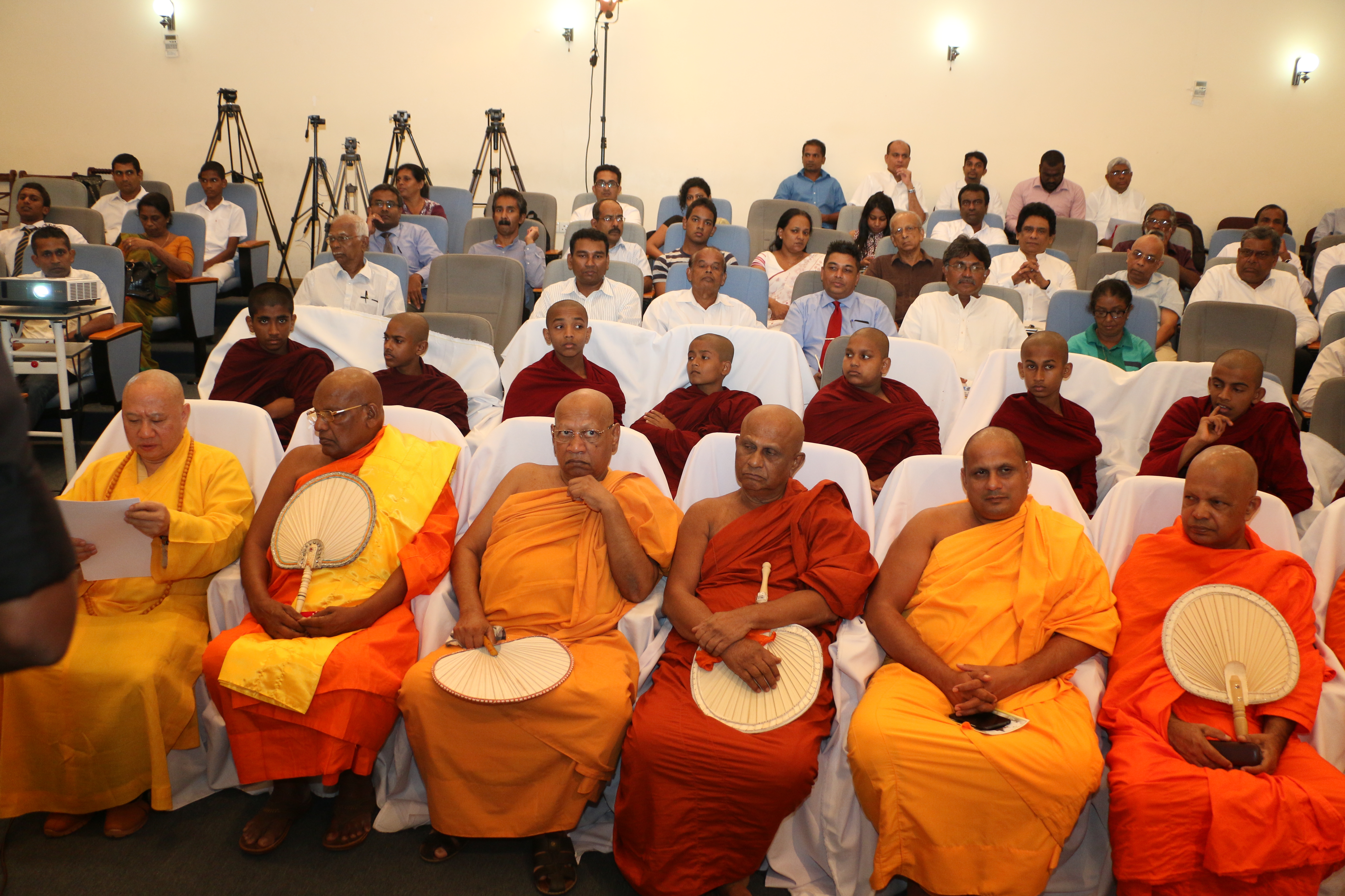 Most Ven. Dr. Ittapane Dhammalankara Thero – Mahanayake Thero of Kotte Sri Samagri Dhamma Sabhawa of the Shyamopali Maha Nikaya, presented the five precepts to be observed by the laity at the conference, while Professor Bellanwila Wimalarathne Thero – Anunayake Thero of Kotte Sri Samagri Dhamma Sabhawa of the Shyamopali Maha Nikaya and Ven.Balangoda Sobhitho Thero – Principal, Vidyodaya Pirivena made Anushashana to those present.